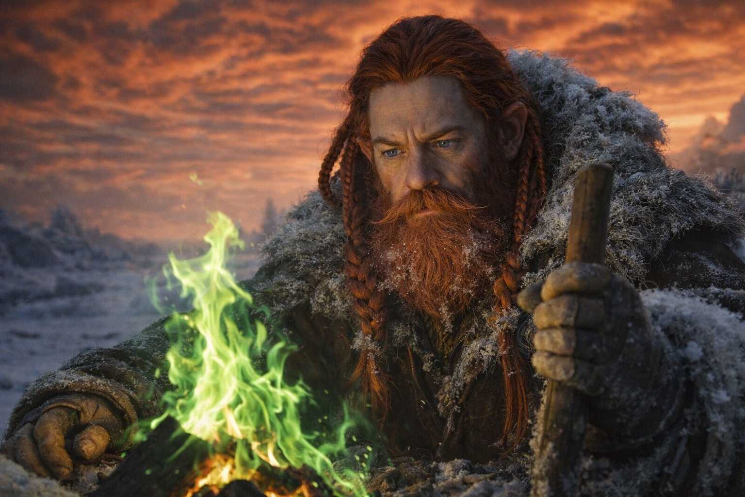 That was the first sign. The thin fire they’d been maintaining against the Frostgard cold, fed with the same fuel they’d been burning for days, turned the color of copper flame without explanation. The wood was the same. The air was the same. The fire was wrong.