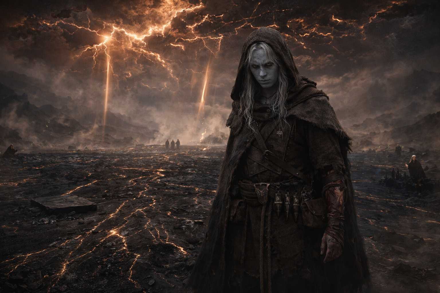 He looked at the barrier’s damaged interior. The scale was what registered. Vast. Engineered for a purpose that had operated for a thousand years and had been disrupted in seconds. The floor stretched in every direction, dark veins in dark stone, the pattern that had once been a living network now a fossil of a system that had worked. The dome above, cracked along fault lines that followed the cascade’s path, each crack a record of the sequence that had broken the world. The amber-rust sky through the cracks, settled, permanent, the new color of everything.