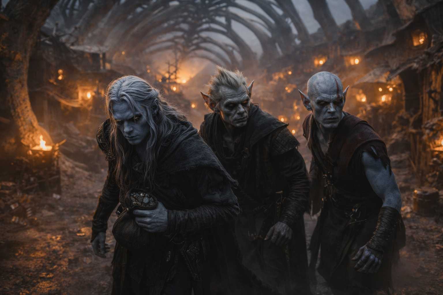 They moved through the settlement’s twisted paths. Species mixed here—drow, goblins, things Drusniel couldn’t name, all of them watching from the corners of their eyes. No one attacked. No one helped. Everyone calculated.