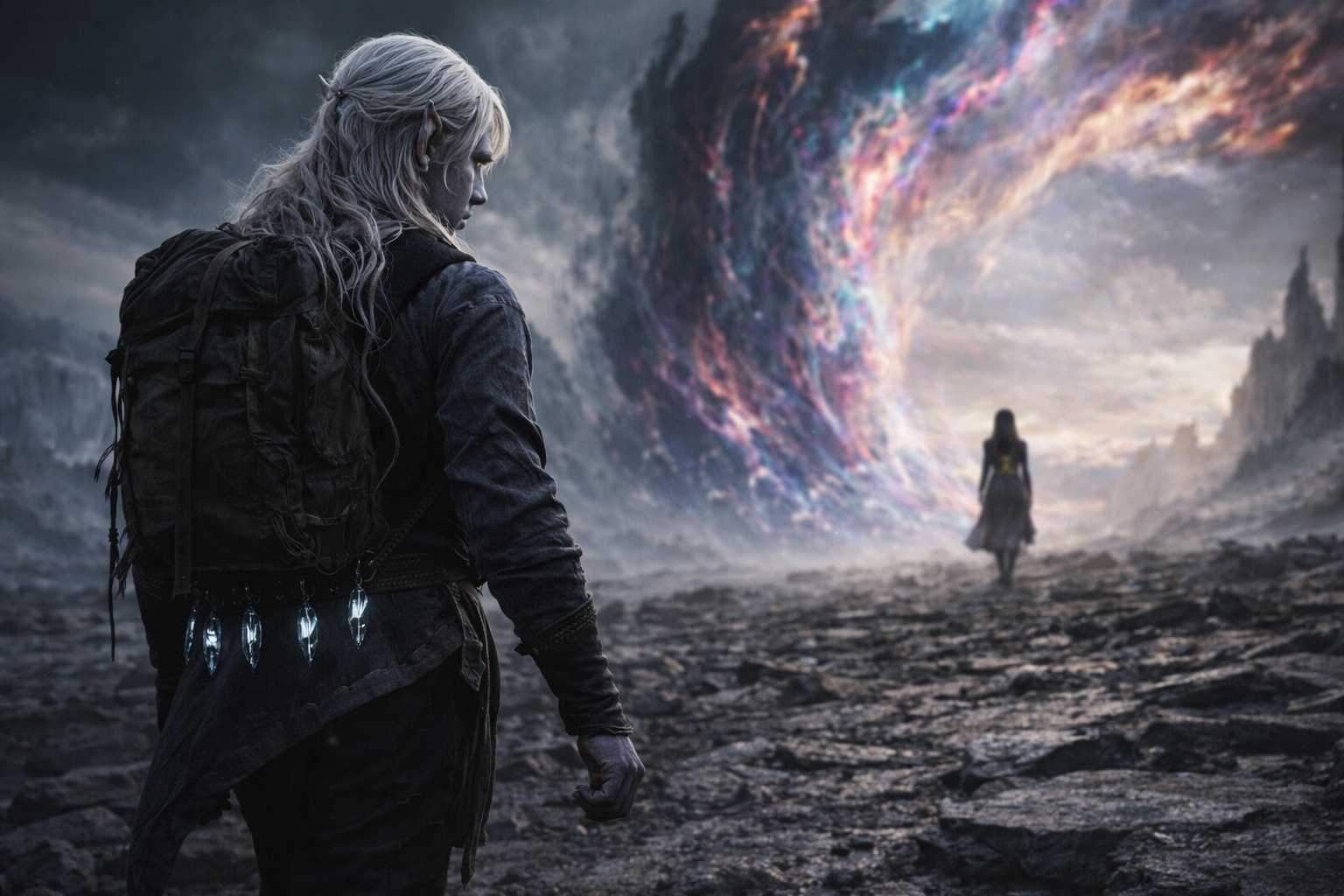 Drusniel looked at Nyxara. She was facing the barrier. Waiting. Not for him. For the mechanism. For the timing that was wrong and would not become right and had to proceed anyway because the debts were real and the path was open and the morning had arrived.