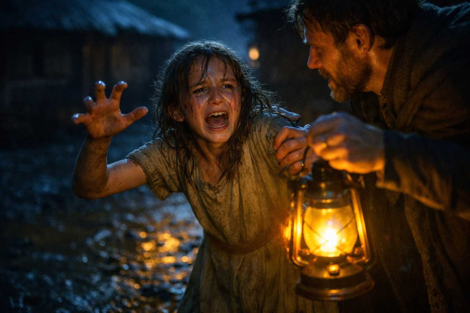 Una figura pequeña tropezó de entre dos chozas. Una niña, doce años como mucho, vestido desgarrado y sucio. Se tambaleó al descubierto con los brazos agitándose, luchando contra sombras que solo ella podía ver.