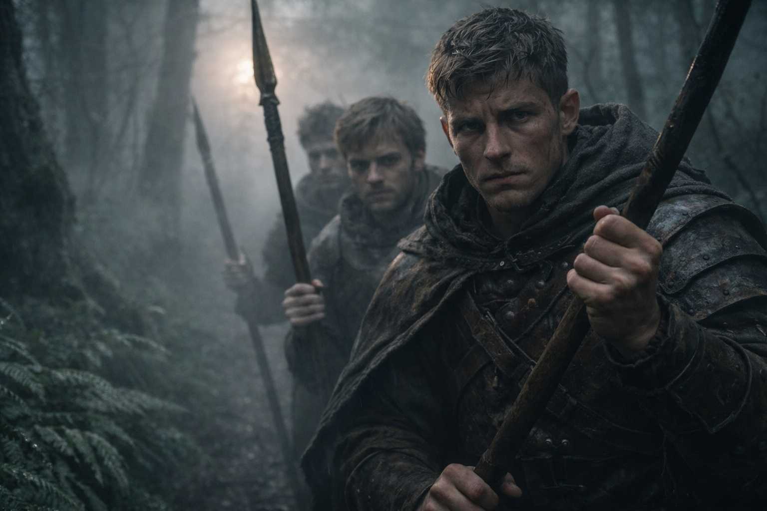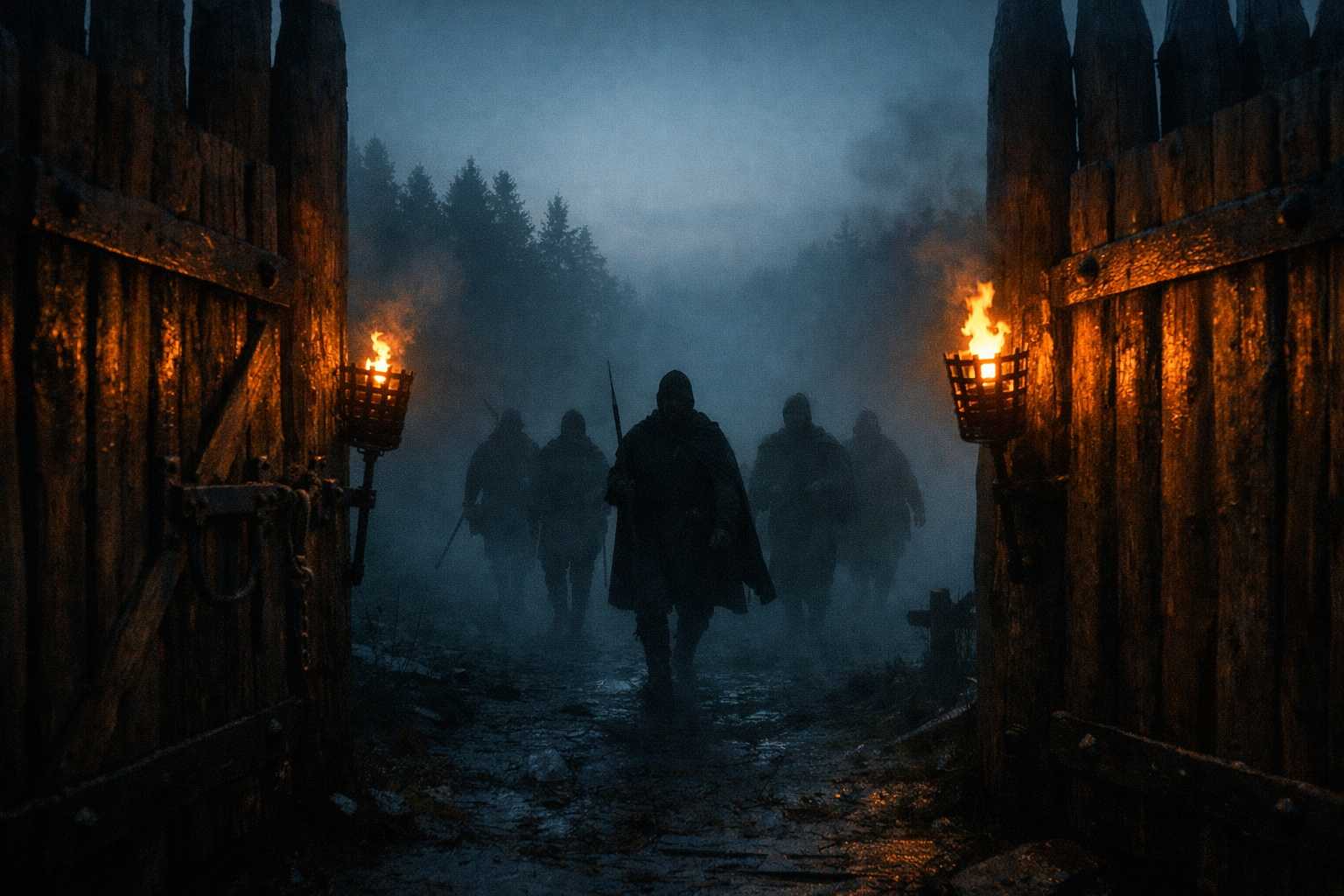 Varian observaba las sombras flotantes, la tensión creciendo con cada paso. Hal y Leofric seguían de cerca, muchachos con barbas incipientes y nudillos blancos apretados en sus lanzas. Demasiado jóvenes para esto. Pero el puesto tomaba a cualquiera que las aldeas pudieran permitirse perder.