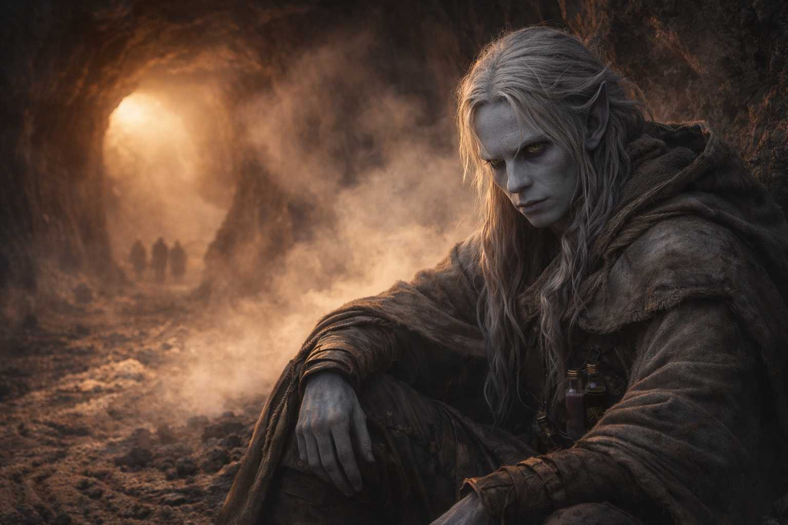 The shapeshifter had been in a cage when Drusniel found him. A prisoner, a thing owned, a body kept alive for someone else’s use. Drusniel had opened that cage. He’d done it for practical reasons, tactical reasons, reasons that had nothing to do with kindness and everything to do with needing a scout. But the cage had opened, and the creature inside had followed him ever since, and now that creature sat at the mouth of a tunnel he couldn’t enter and sharpened a blade he couldn’t use to help.