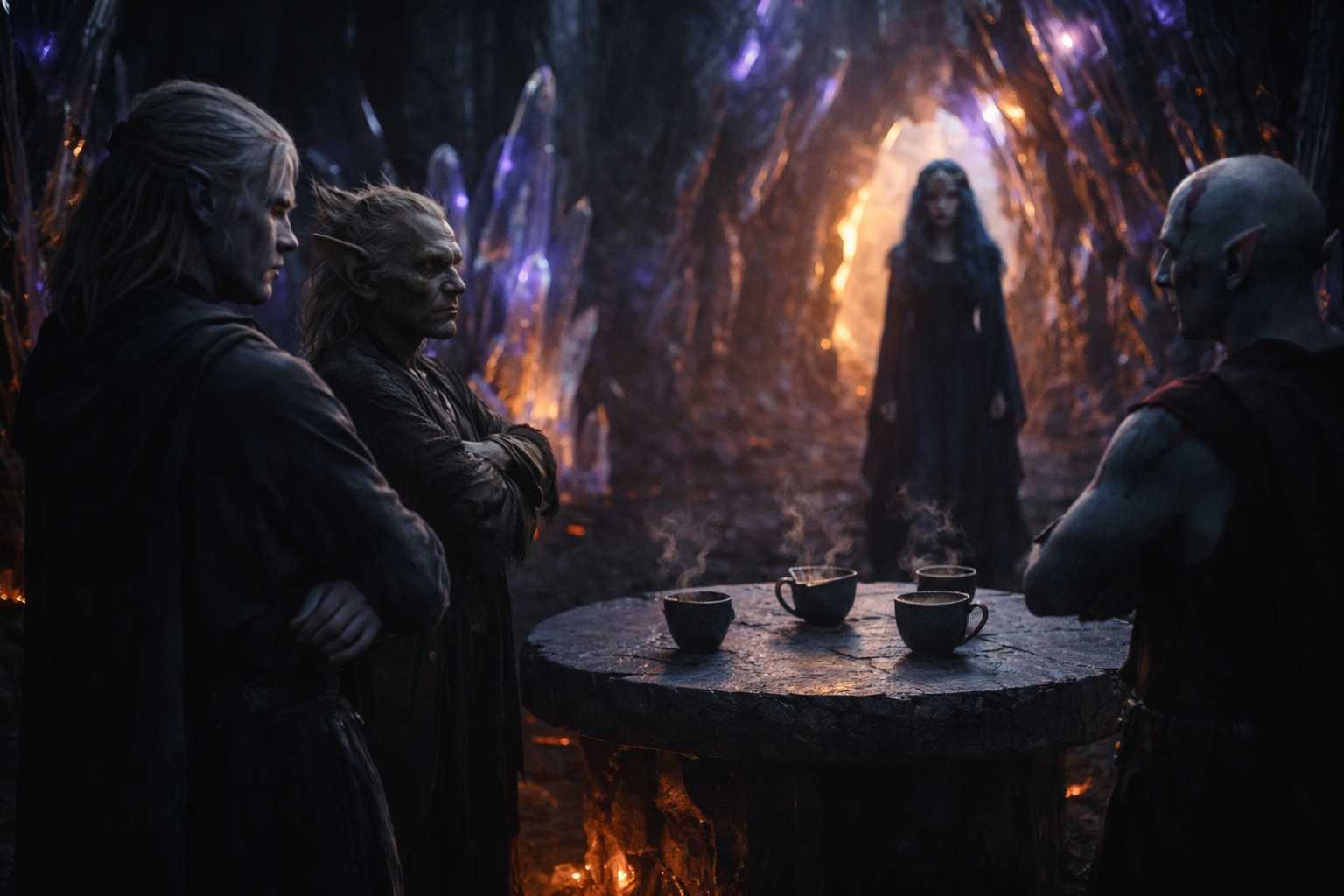 “I was expecting someone. The volcanic shelf has been loud for weeks. Energy moving through old channels, waking things that prefer to sleep. And then three travelers descended from the ridge into my fields, and one of them threw my arrows aside with a thought.” She picked up her cup and drank. “I don’t get many drow in my territory. Almost none with your particular talent.”