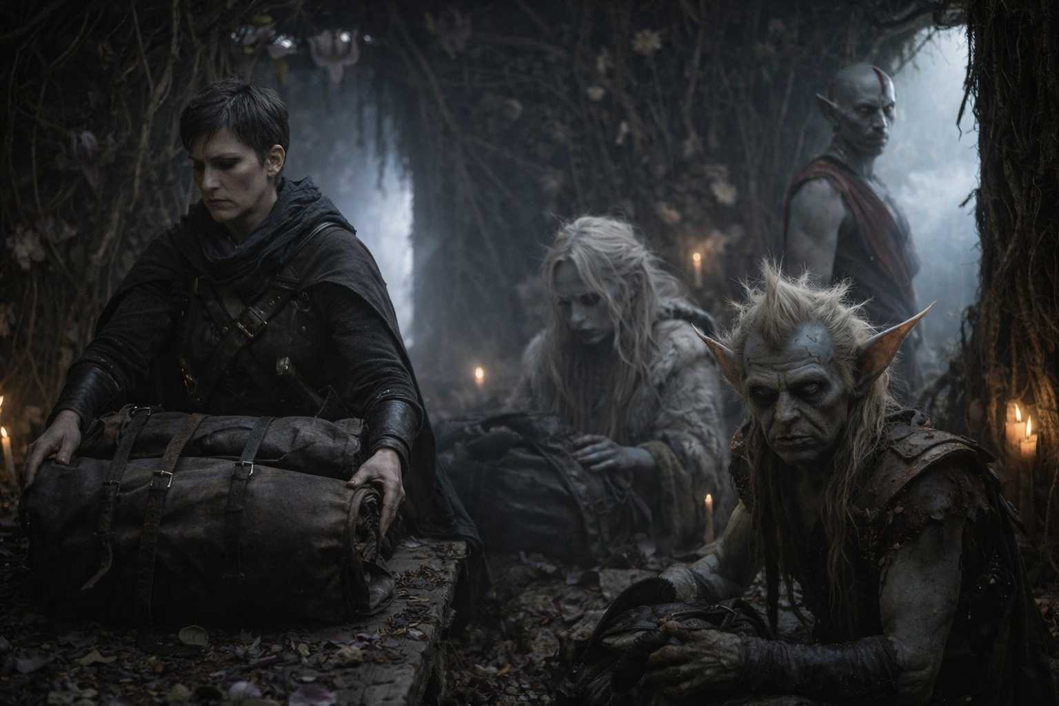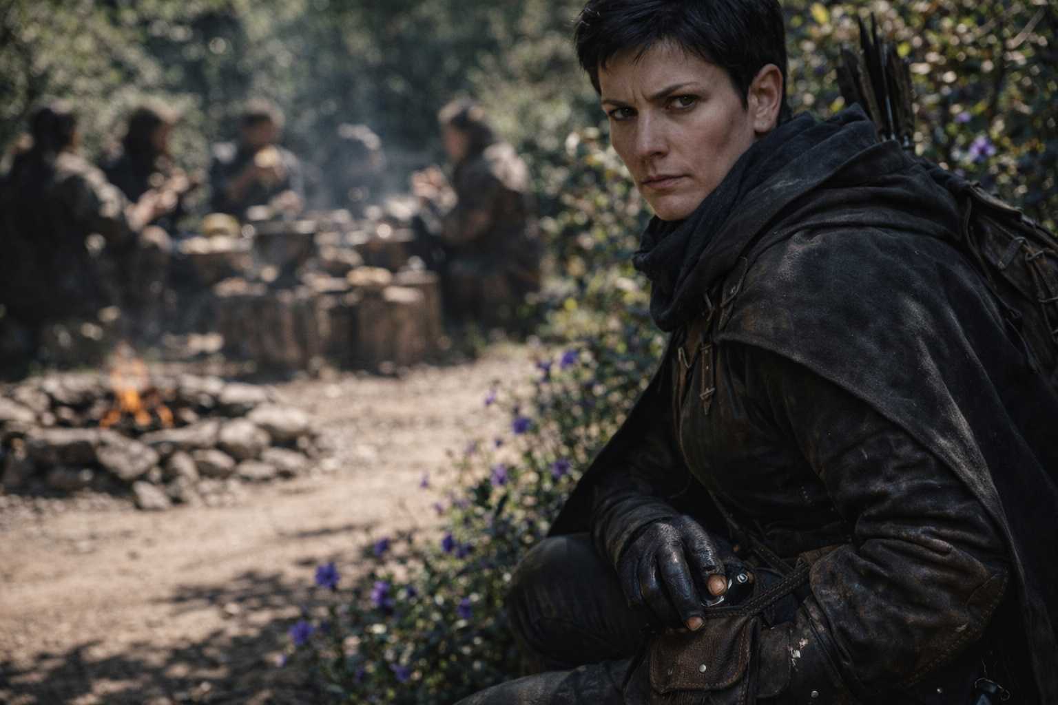 At midday, Talryn called a halt at a clearing that bore the signs of regular use: a fire pit, stacked supplies, a water source. She distributed rations without conversation and took up a position at the clearing’s edge, watching the path behind them with the patience of a spider at the center of its web.