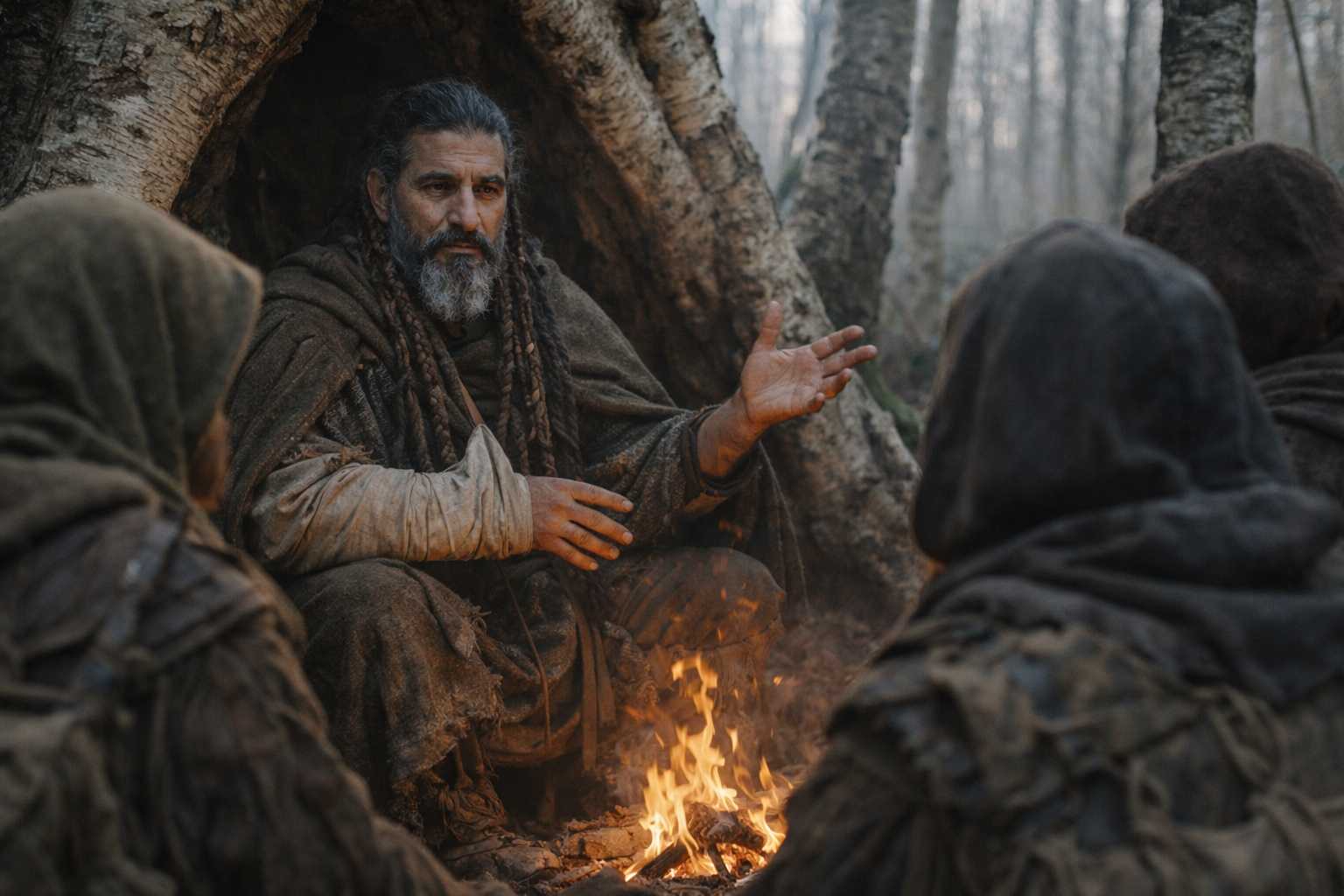 They sat in the birch hollow with the remains of a fire that Aldric had rebuilt for warmth rather than comfort, and the old druid arranged what he knew the way he arranged everything: in circles, arriving at the center through progressively smaller orbits, each one adding a layer that the previous hadn’t mentioned.