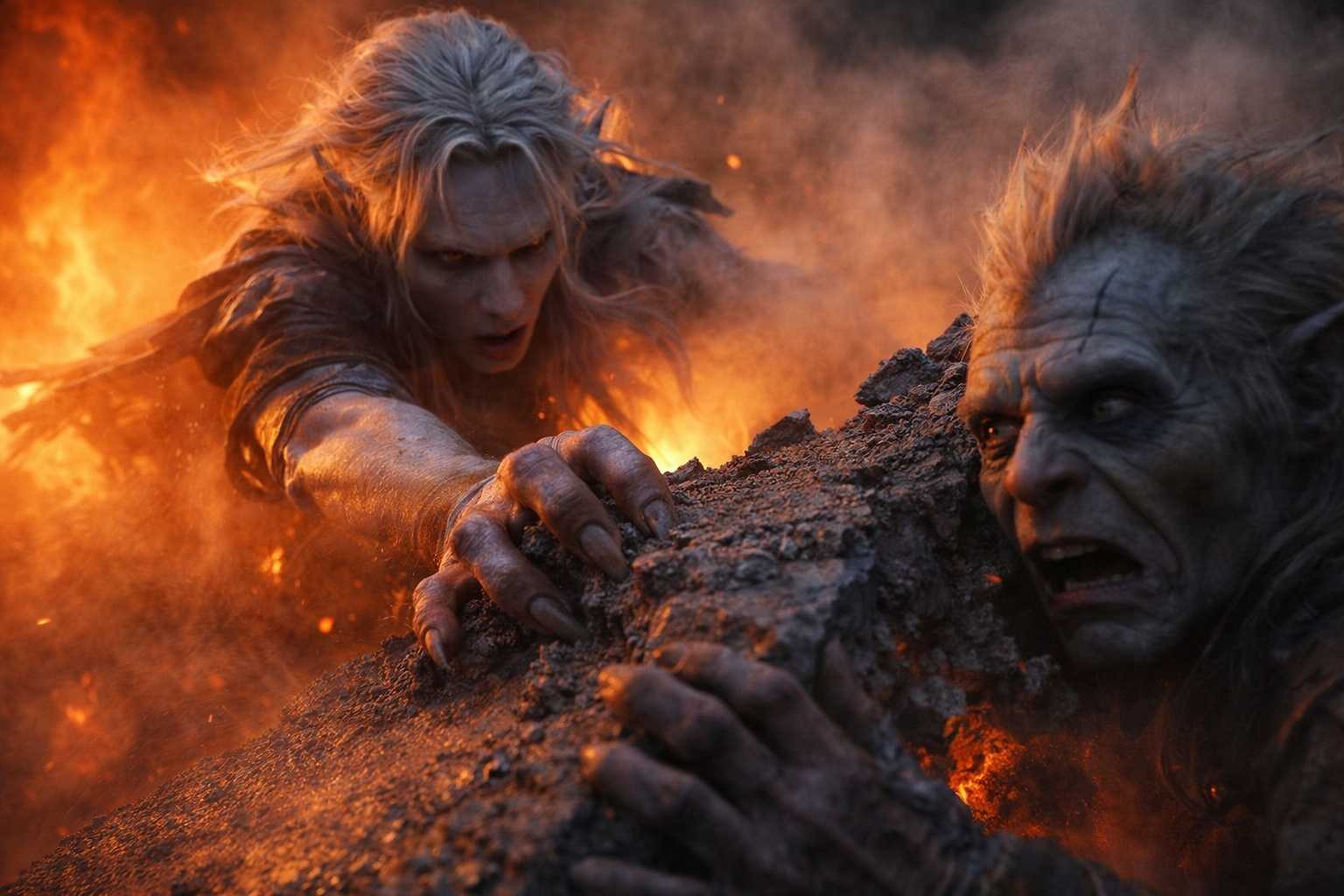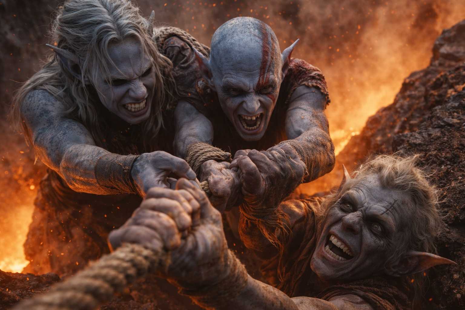 The shapeshifter had been behind the goblin and below him, already on the tipped portion of the plate, one hand gripping a fracture line in the basalt. His other hand closed around Srietz’s wrist with the grip of someone who understood, in his body rather than his mind, what falling meant.