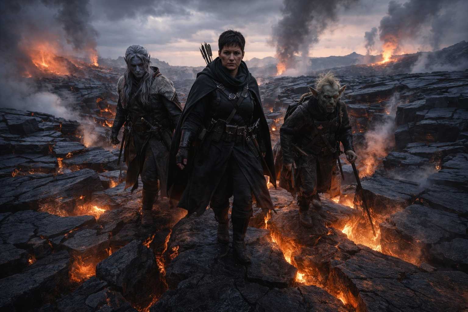 Drusniel sat with his back against a ridge of cooled lava and pressed his fingers into a crack in the stone beside him. He traced its path along the surface, letting the geometry settle his breathing. A long crack, forking twice, ending at a chip where something had struck the basalt years ago.