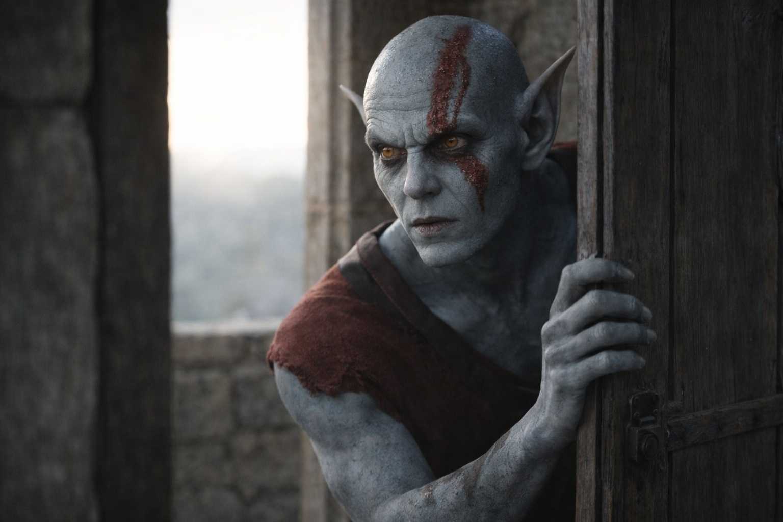 Elion moved through the morning routine with the controlled efficiency of someone whose body was a tool he’d chosen for the task. Grey skin, amber-orange eyes, the red markings on his face that might have been paint and might have been something else. He packed his few belongings, checked the door, scanned the room. His movements carried a tension that hadn’t been there before Szoravel’s examination. The word “passenger” sat between them, unnamed and enormous.
