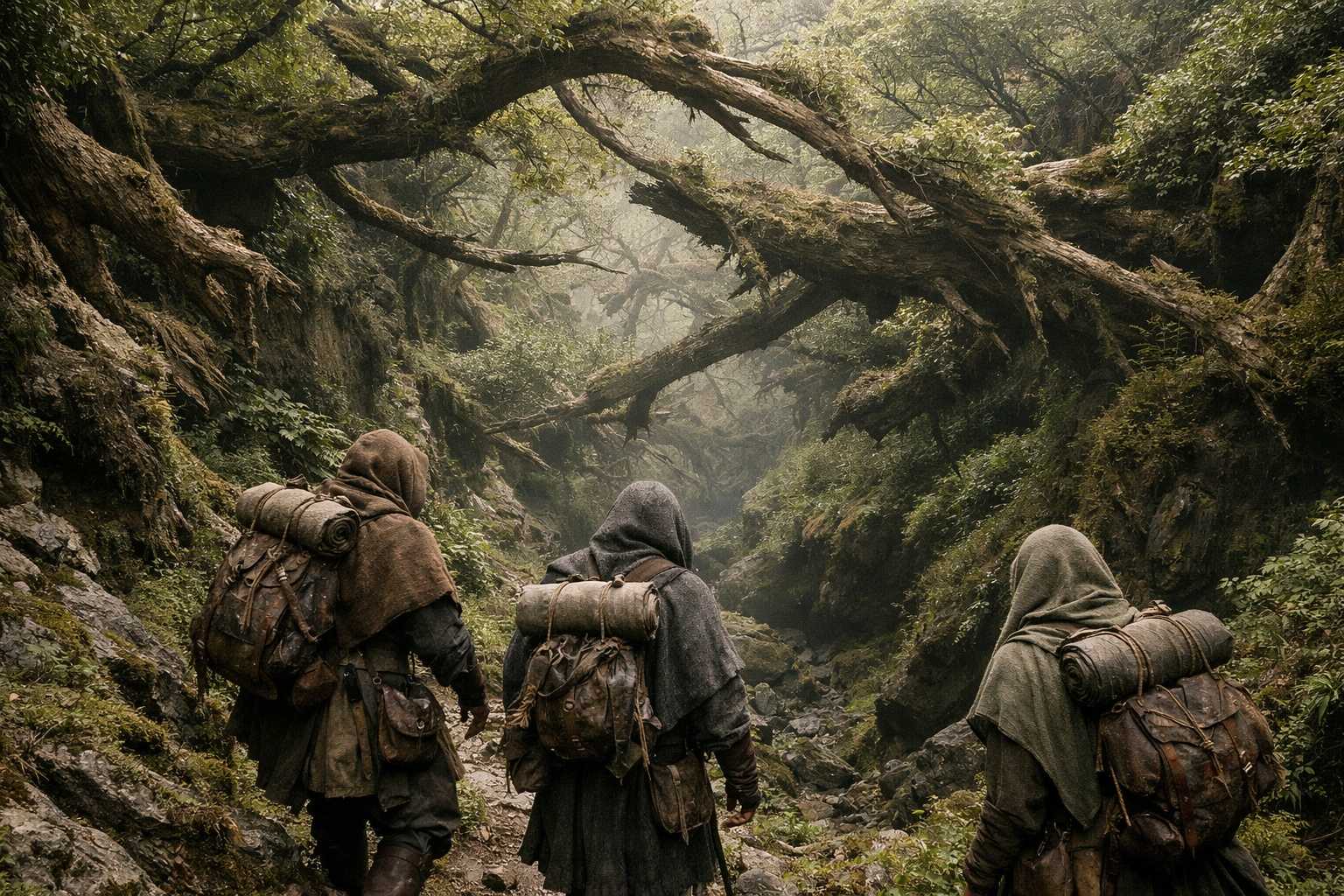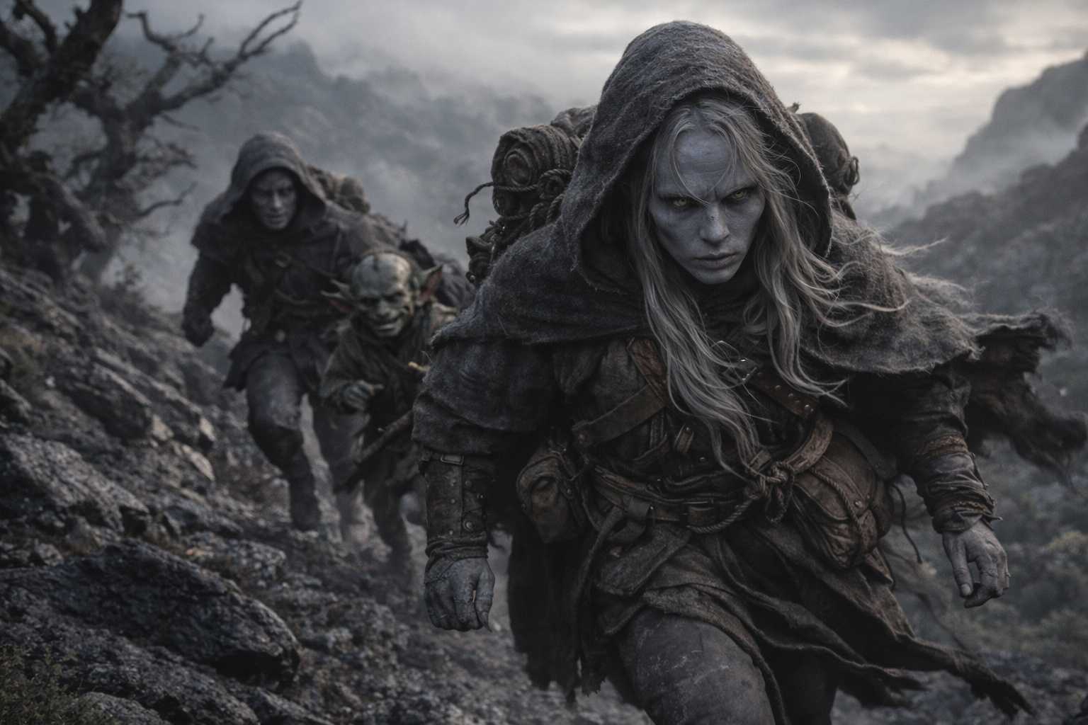 They slowed to a sustainable pace when the running became untenable. Walking east, single file on the ridge, Drusniel in front with the map, Srietz and Elion behind, the space between them measured not in paces but in the quality of the silence that filled it.