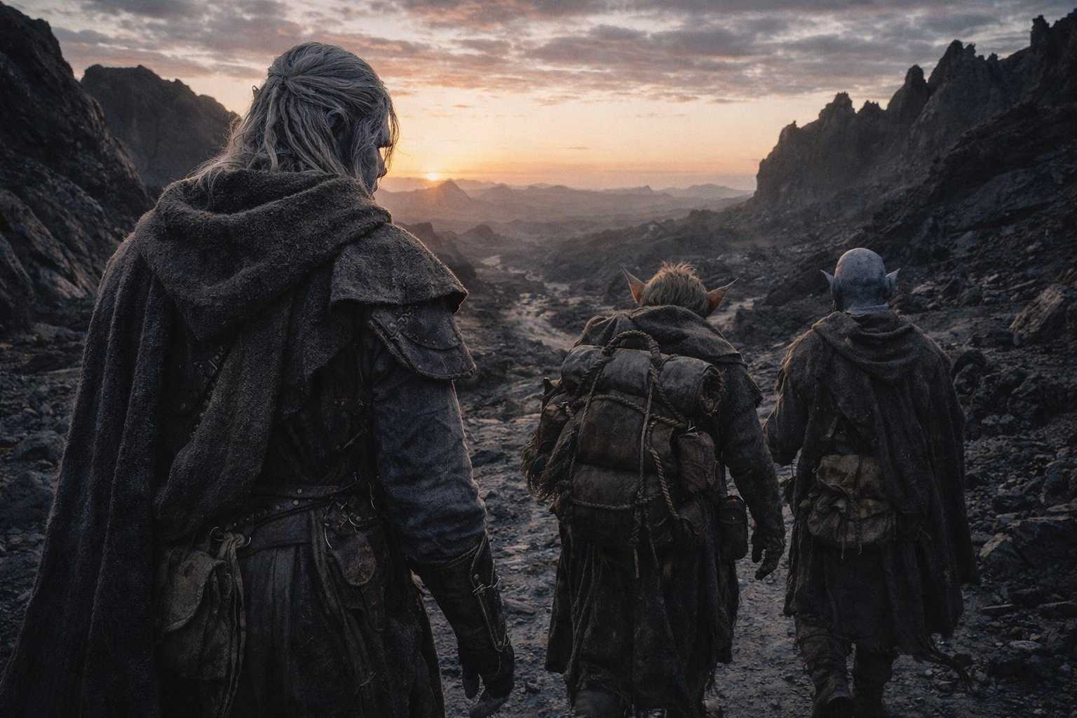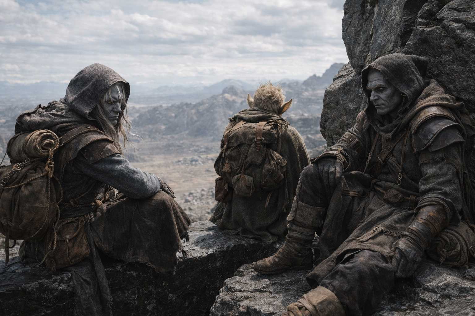 They’d made camp in a formation of rocks that provided windbreak and sightlines, the kind of natural shelter that Srietz identified by instinct and Drusniel was learning to see. The goblin had built a small fire from vegetation that burned low and hot and produced minimal smoke, another skill from the catalogue of survival knowledge he’d accumulated in three years of slavery and however many years of not being anyone’s possession.