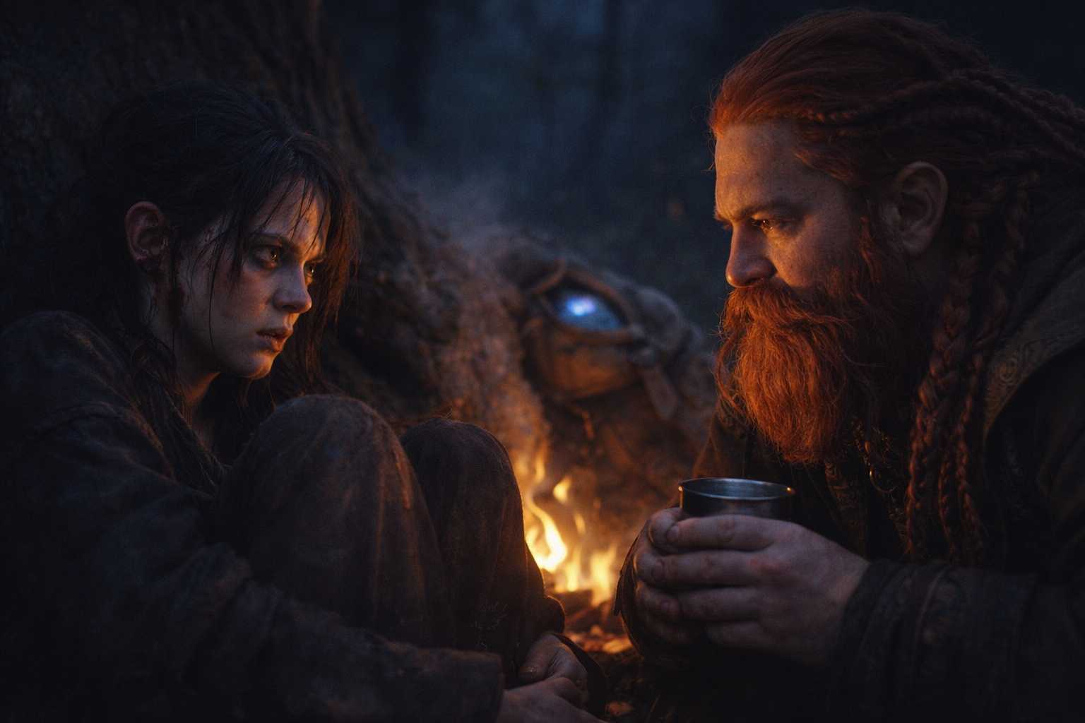 They made camp early. Xandor prepared a tea from dried herbs he kept in a leather pouch, something for pain and swelling, and Maris drank it without complaint. The bleeding stopped within the hour, but she remained pale, hollow-eyed, curled against a tree root with her arms wrapped around her knees.