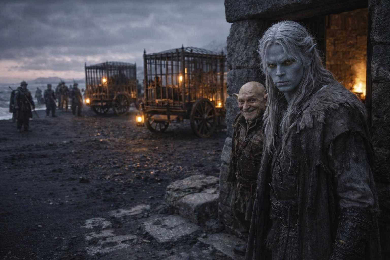 Three wagons, heavy-built and reinforced. Guards that moved with military precision. And cages. Iron-barred cages bolted to the wagon beds, some of them occupied.