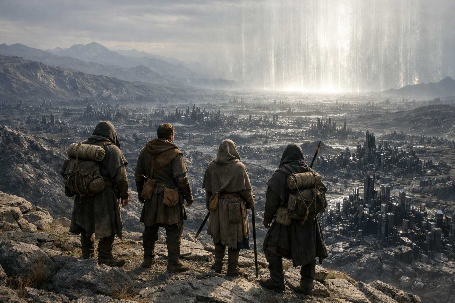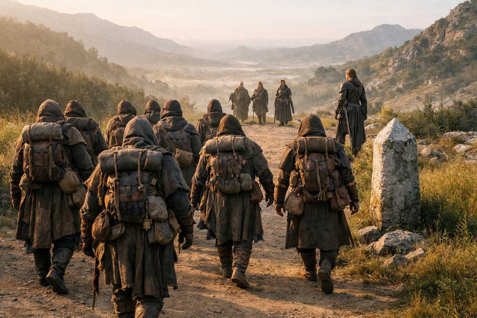 They descended. Four figures on a ridge, heading east toward a boundary that predated everything they understood about the world they were in. Behind them, the maintained paths and organized territory of Nyxara’s domain receded into the landscape. The last safe place.