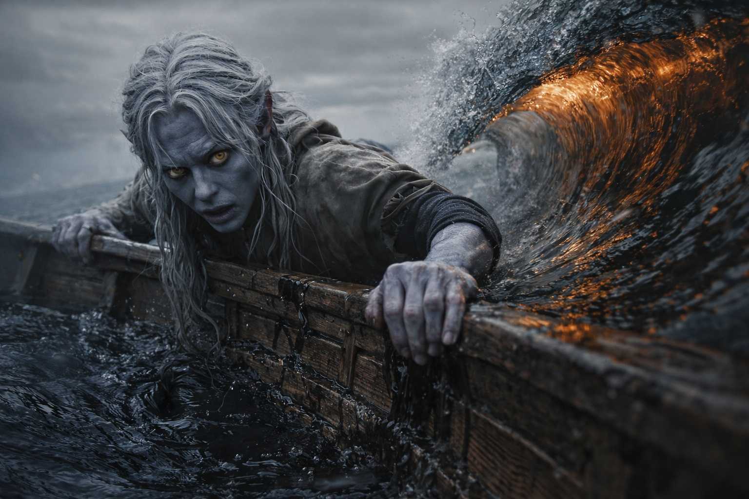 Drusniel grabbed the oars and pulled hard, trying to angle the bow into it. The boat responded sluggishly, fighting the water’s density. The wave hit sideways, lifting the hull, tilting it at an angle that defied physics.