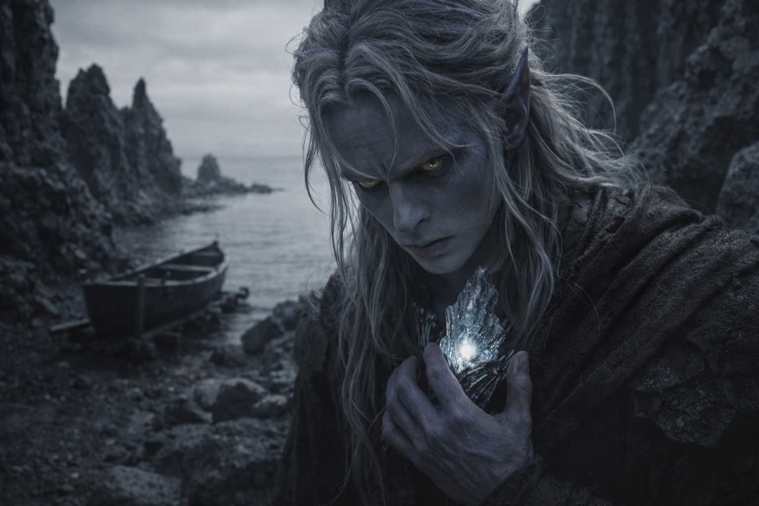 He found the cove exactly where it should have been. The rocks jutted from the shore like the jaw of some ancient beast, and behind them, the cave entrance was barely visible, a shadow darker than the surrounding stone. Drusniel descended carefully, counting his steps on loose gravel that shouldn’t exist this close to water.