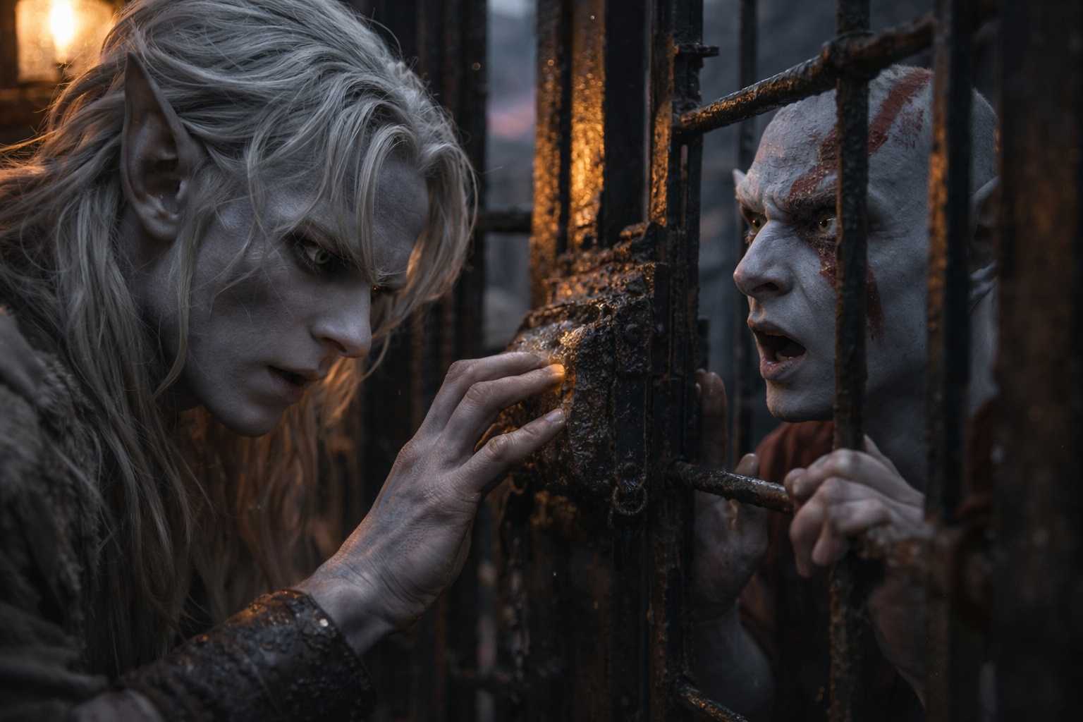 For a moment, Elion didn’t move. He stood in the cage’s opening, grey skin catching the dim light, and breathed like he’d forgotten how.