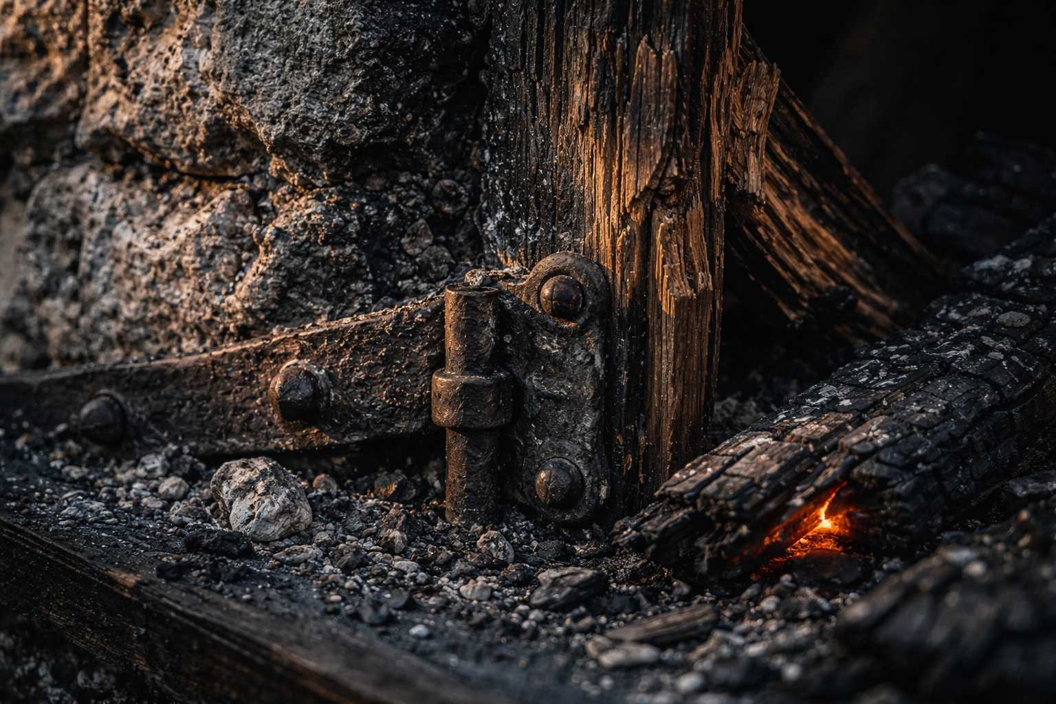 The scorch marks on the walls. The broken door. The collapsed building. Evidence of an attack, perfectly staged.