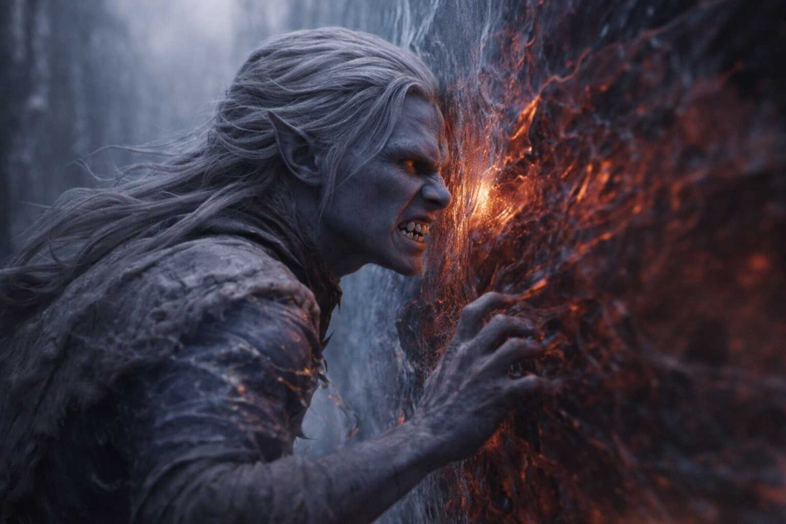Drusniel looked at the barrier one more time. Beyond it, he could see shapes—suggestions of landscape, hints of a world that didn’t belong in this one. Red light. Black rock. Something vast moving in the distance.