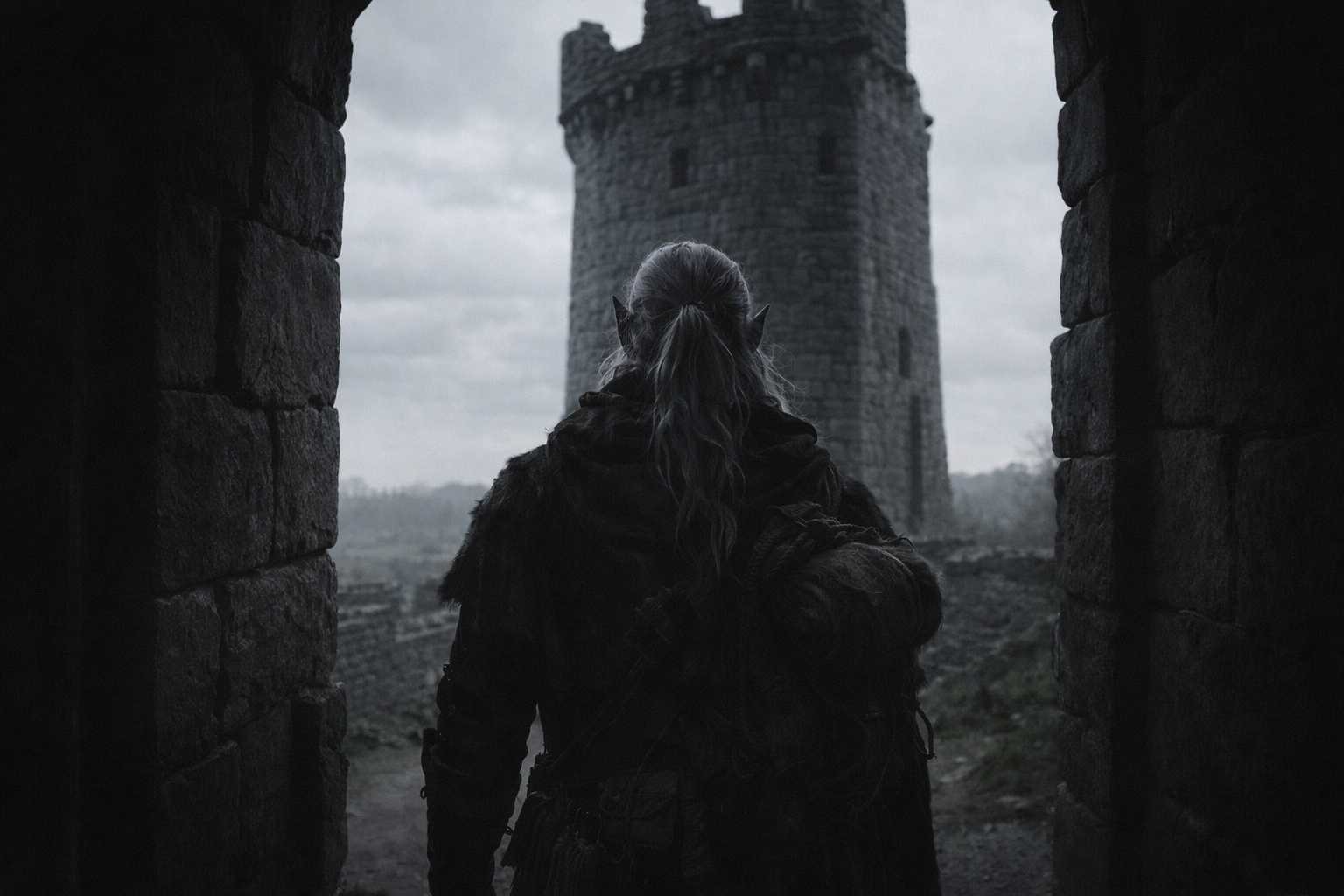 A figure in the tower’s entrance. Not clear. Not detailed enough to read features or expression. A shape that was taller than Drusniel expected, broader, standing in the doorway the way someone stands when they’ve been standing there for a long time and have no intention of moving until the thing they’re waiting for arrives.