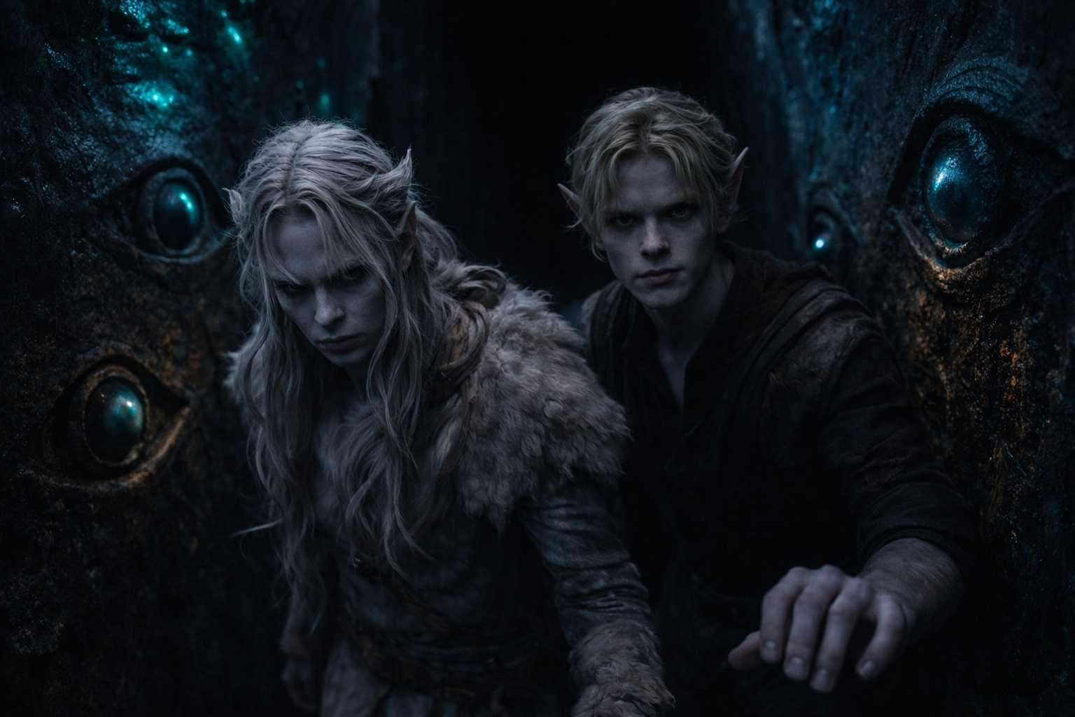 The antechamber stretched before them, carved from the living rock of Umbra’kor’s deepest reaches. Bioluminescent fungi clung to the ceiling in pale clusters, casting the dozen other candidates in sickly blue-green light. Most sat in tight groups, whispering prayers to Venemora. A few stood alone, eyes closed, breathing the patterns their families had drilled into them since birth.