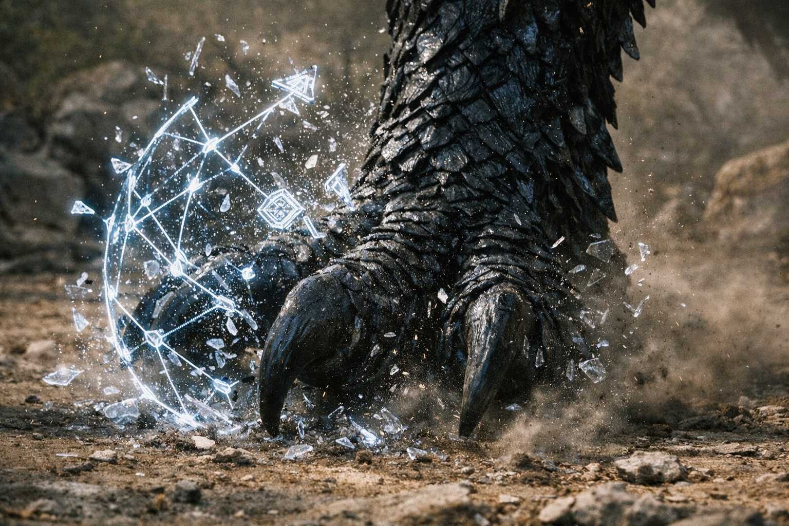 The lattice hit Nyxara’s leg and shattered. Not from force. From insufficient scale. The disruption pattern was designed for a body that fit inside a building. Nyxara’s leg was the size of a building. The lattice broke the way a net breaks when thrown around something too large for its mesh.