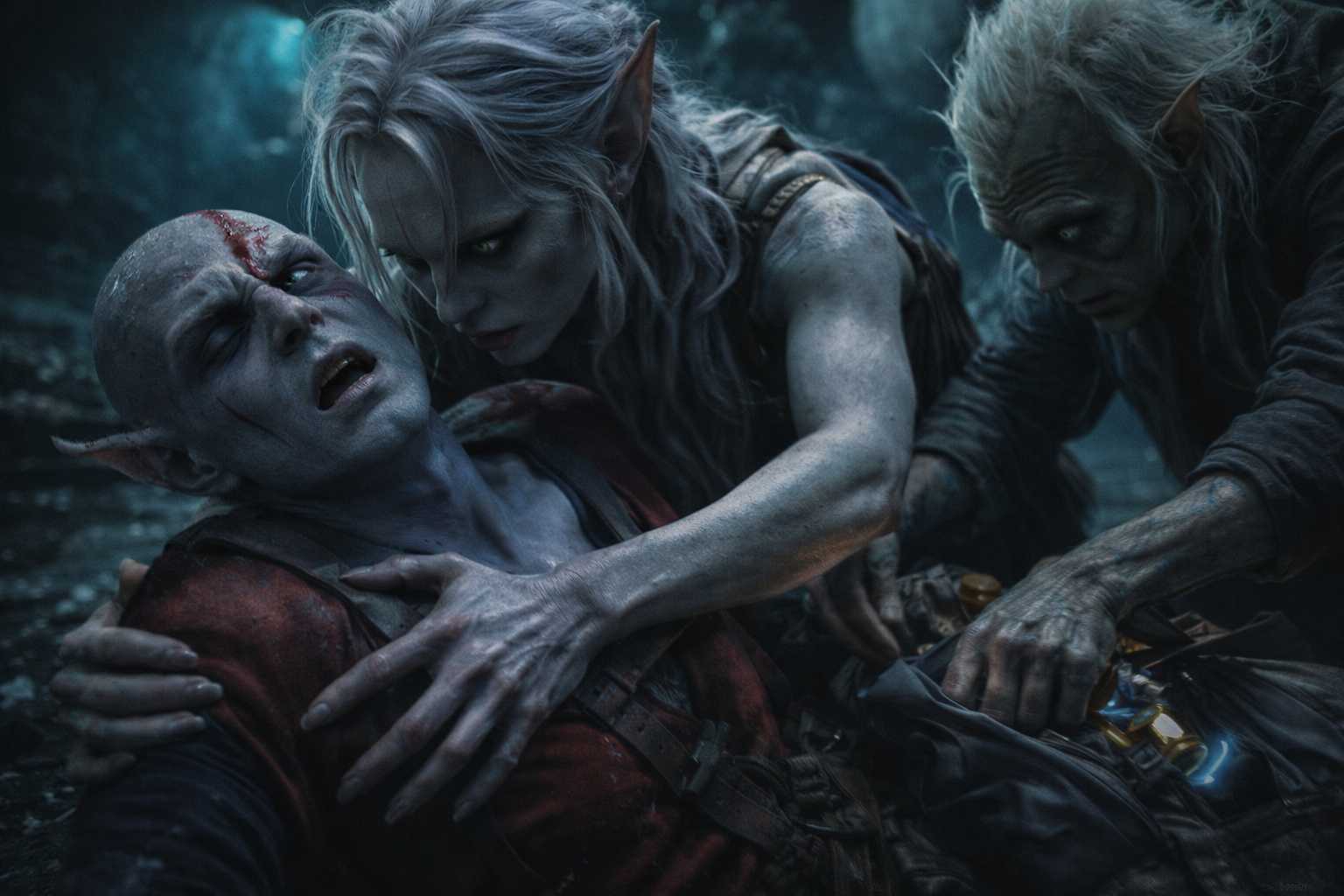 Together, they dragged Elion deeper into the cave, away from the entrance, propping him against a wall that held some residual warmth. His breathing was shallow, rapid, and his skin felt like paper over kindling.