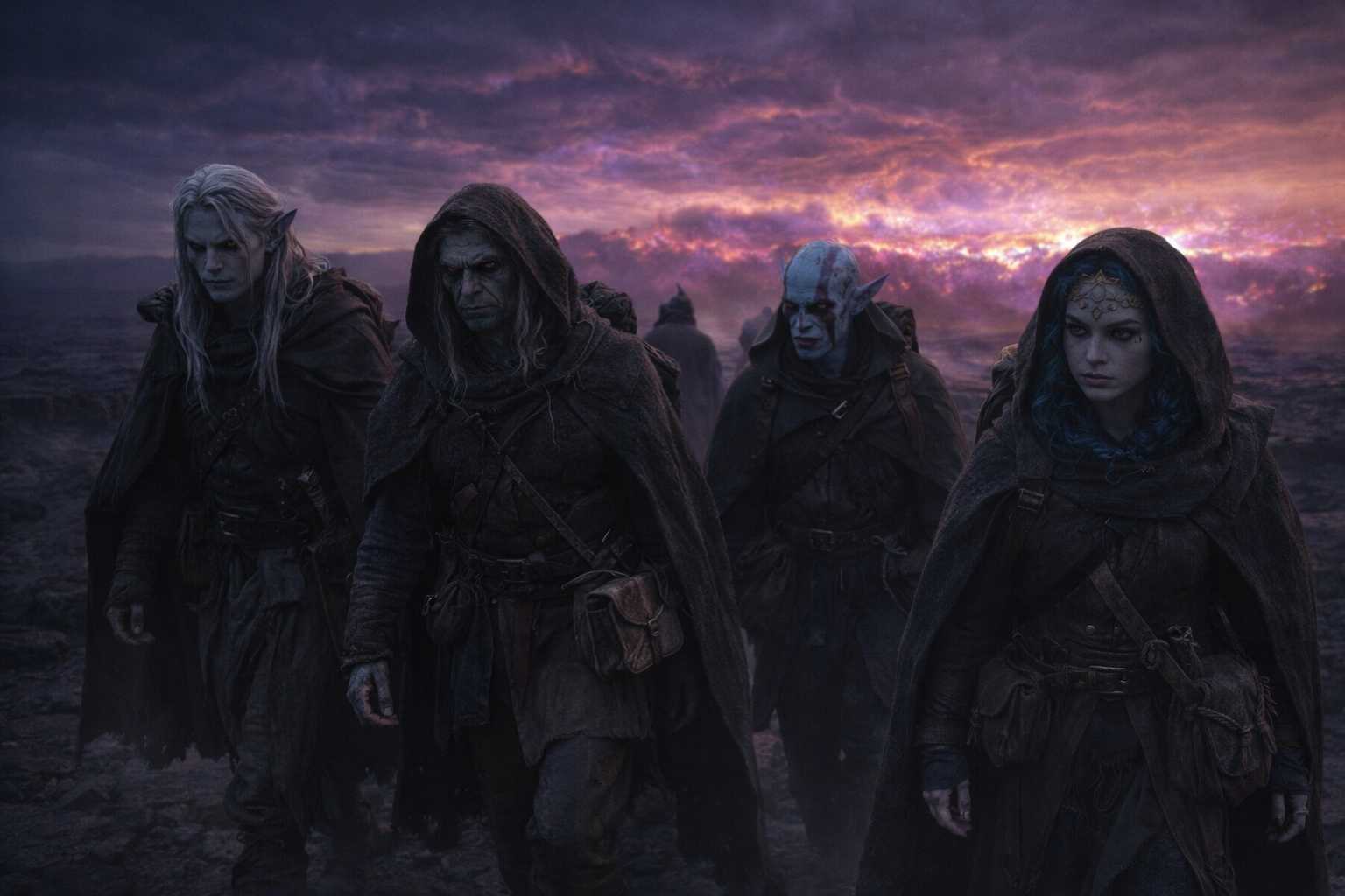 They were walking. Night had not lifted so much as changed texture, the dark becoming a different kind of dark as they moved closer to the barrier, the air thickening with a pressure that Drusniel’s adapted body processed and his unadapted mind could not. The sky’s distortion was overhead now, not just at the horizon. Colors that had no names ran in bands across the firmament, and the light from no visible source cast shadows that pointed in directions that didn’t correspond to any angle Drusniel could identify.